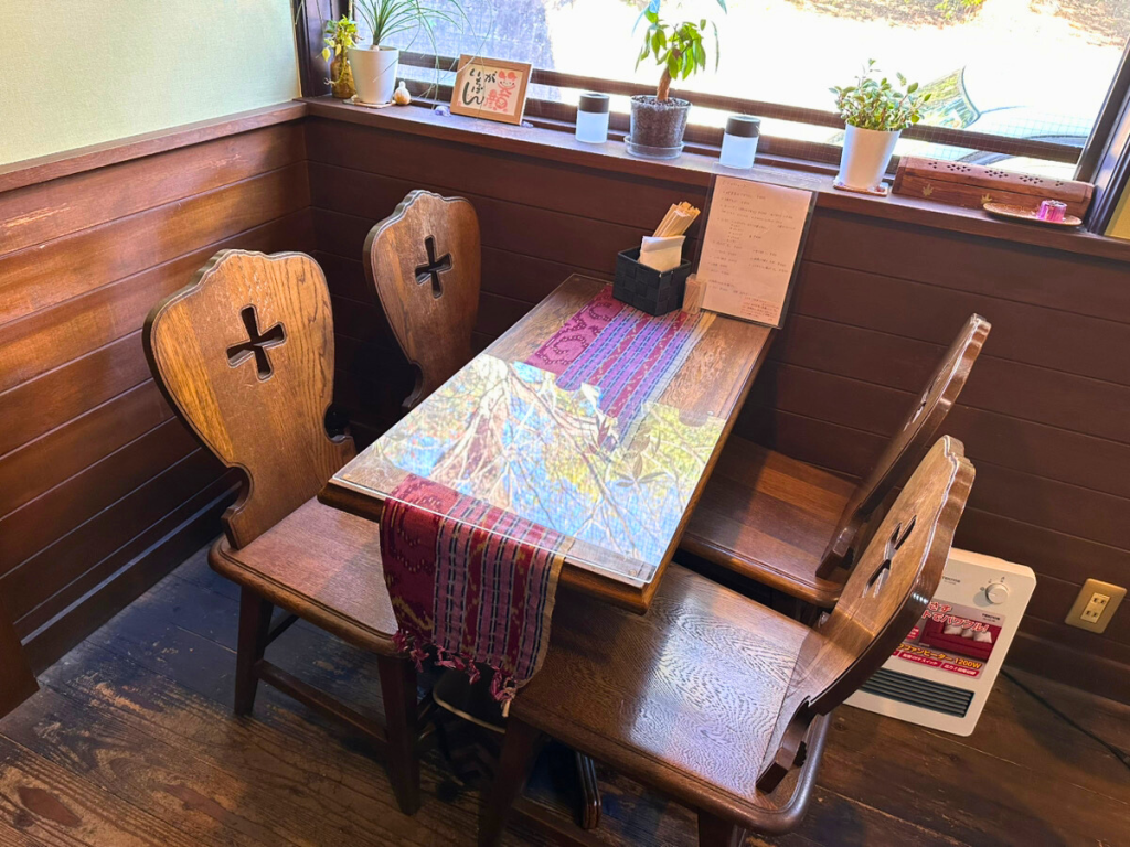 店内はテーブル席2つとカウンター席。木のぬくもりを感じる、落ち着いた雰囲気の空間です。