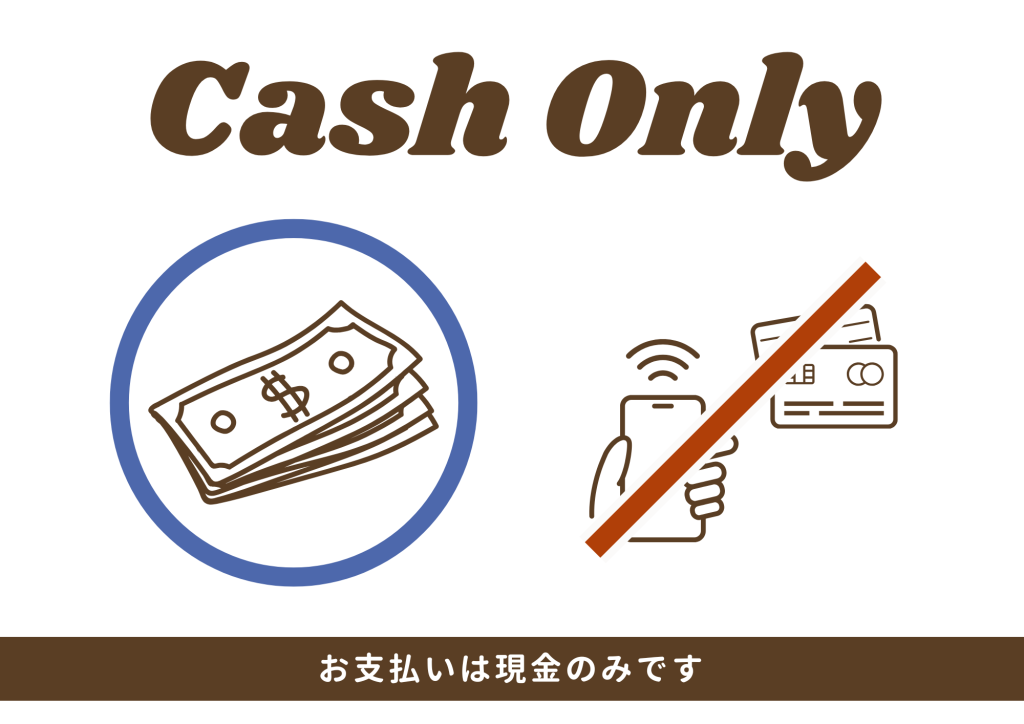 お支払いは現金のみです。