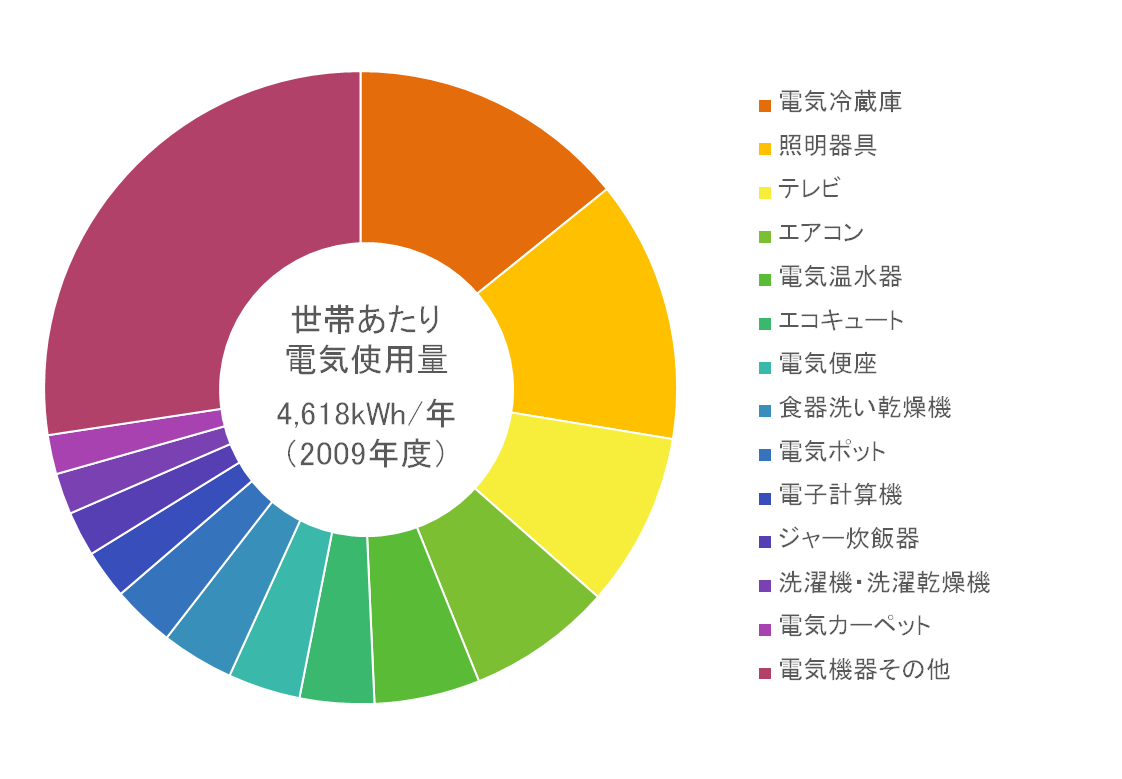 まず始めに家庭の中でどんな電化製品が電気を消費するのか見ていきましょう。