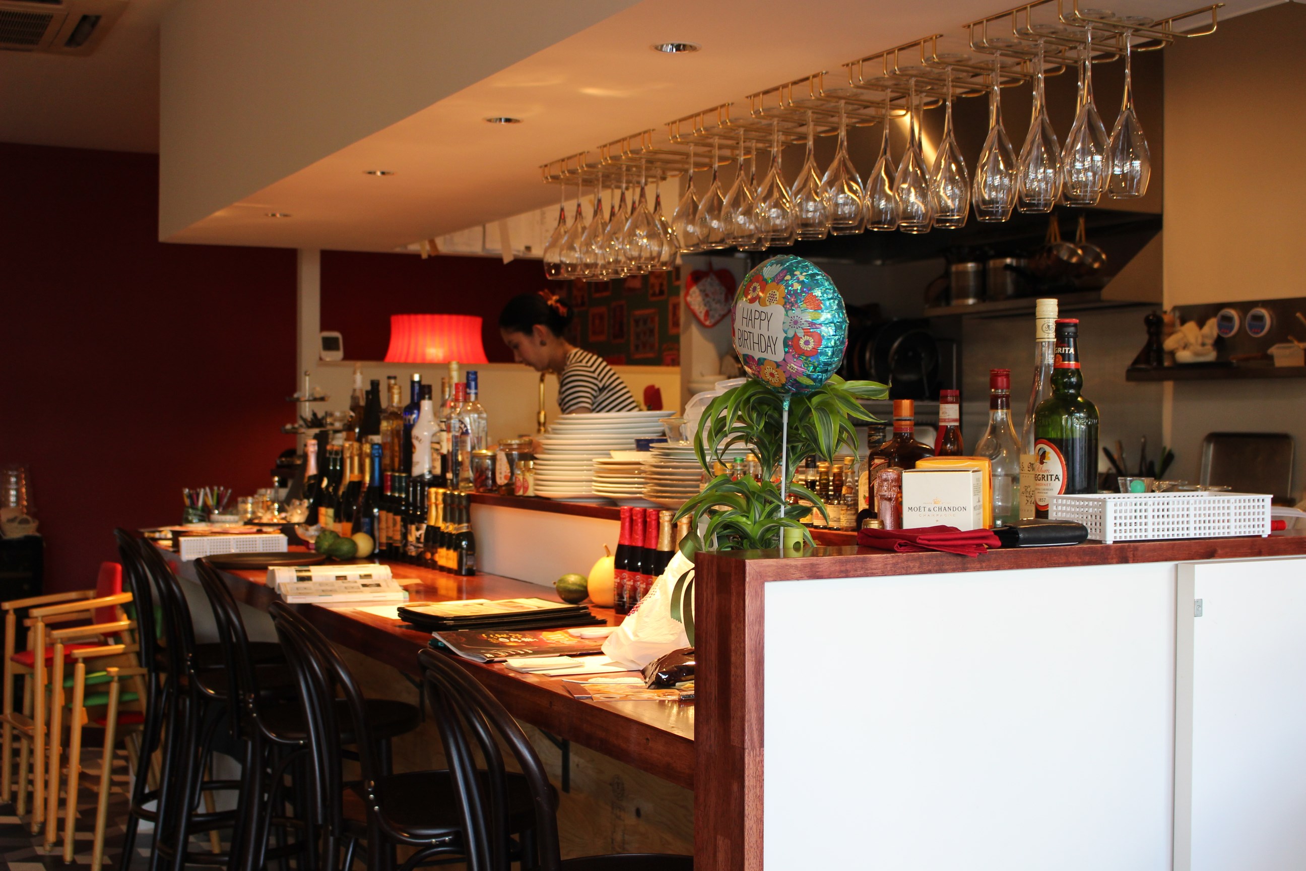 店舗面積は20坪。テーブル20席、カウンター5席の計25席。