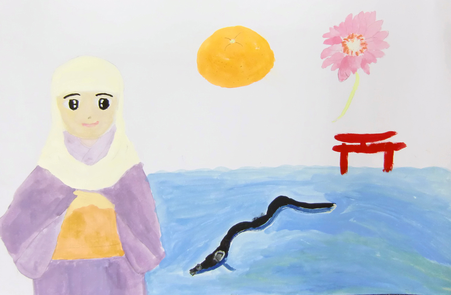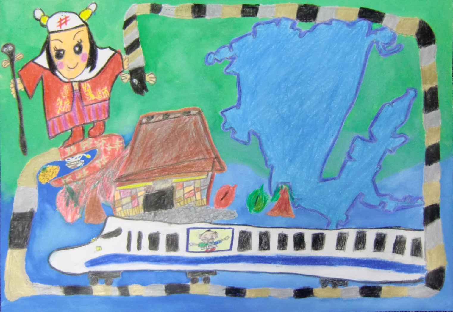 作品コメント:浜名湖と引佐町特産品の三ヶ日みかんを書きました。
