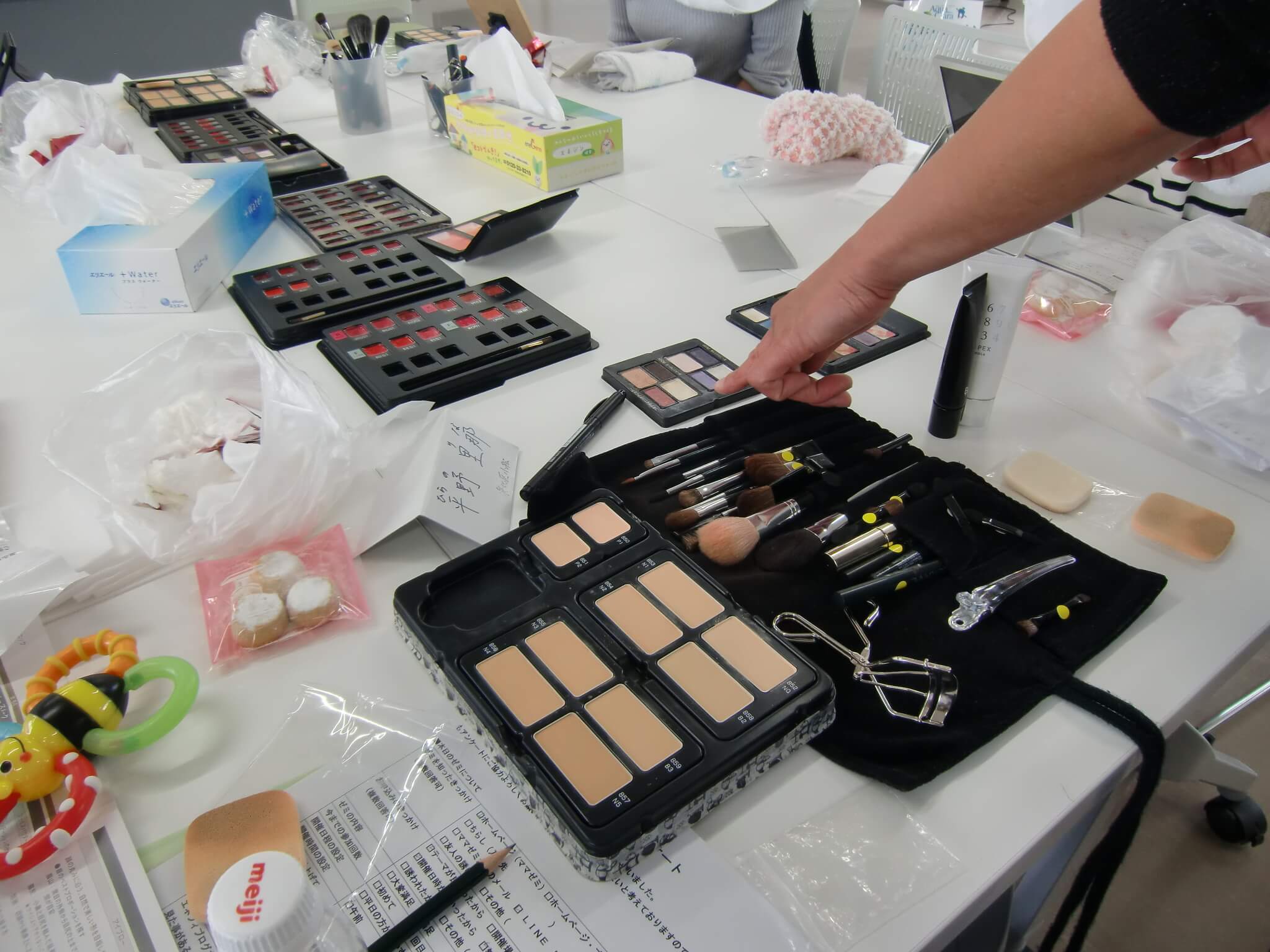 POLAさんに持ってきていただいた、春の新作のアイシャドウやチーク、口紅を使わせていただいて、