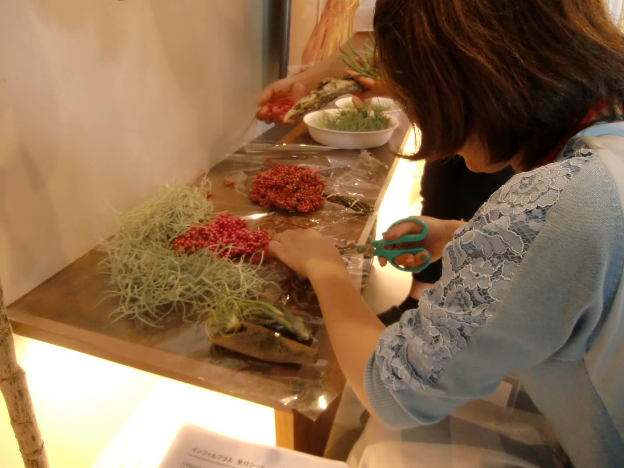 エアプランツについて教わった後は、ガーデンやインテリアグリーンの専門家の指導の元、オリジナルのエアプランツを作りました。