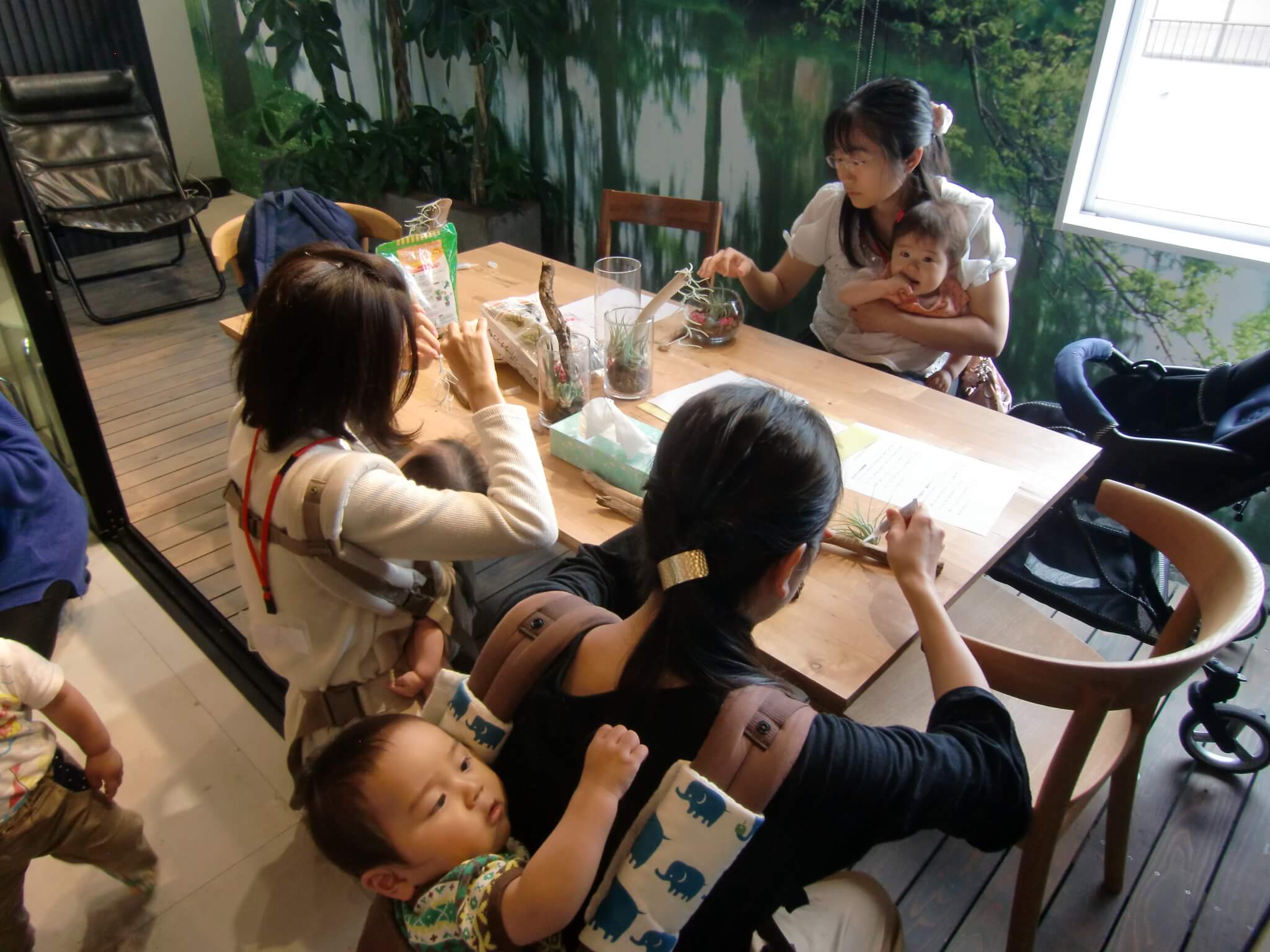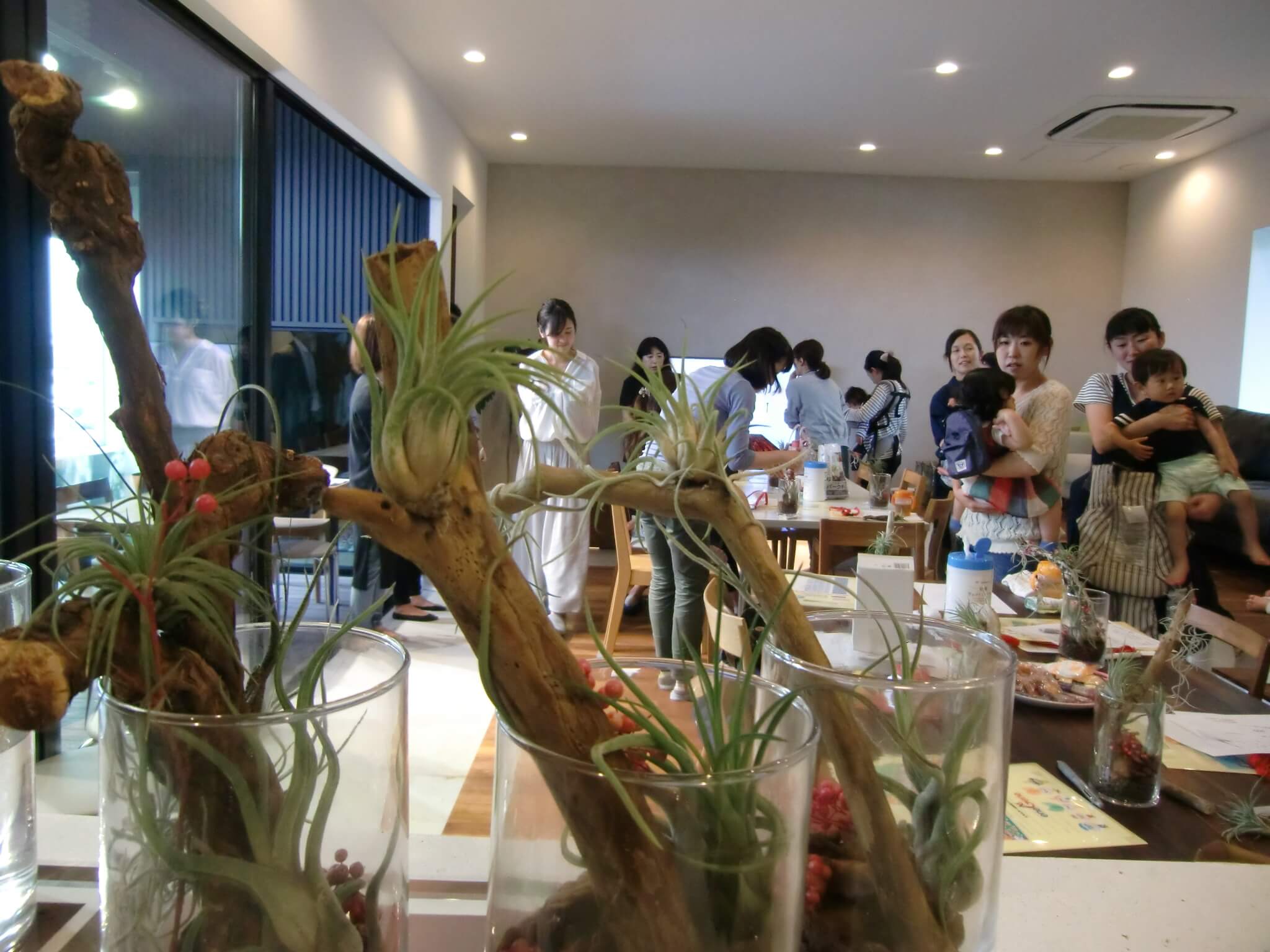 全員が完成した後、参加者同士のエアプランツを見合いました。どの作品も、ママたちの個性が出ていて完成度が高かったです!