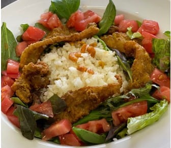 今日とった人参、生のブロッコリー、大根をオリーブオイルと塩で混ぜて、人参の葉っぱを乾燥させたものを混ぜてありました。