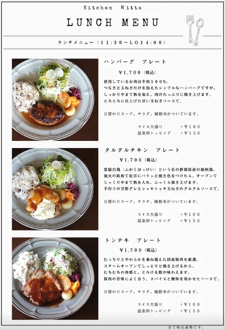 Instagram: kitchen_ritta_(最新メニューや営業日の確認に便利です)