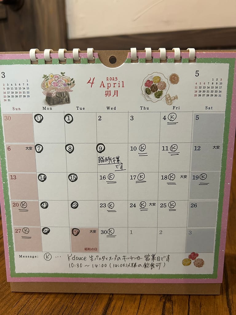 2025年4月営業日カレンダー