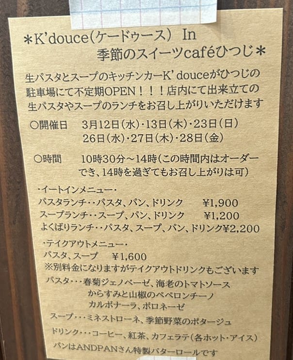 浜松市内でパスタやスープのキッチンカーをしている