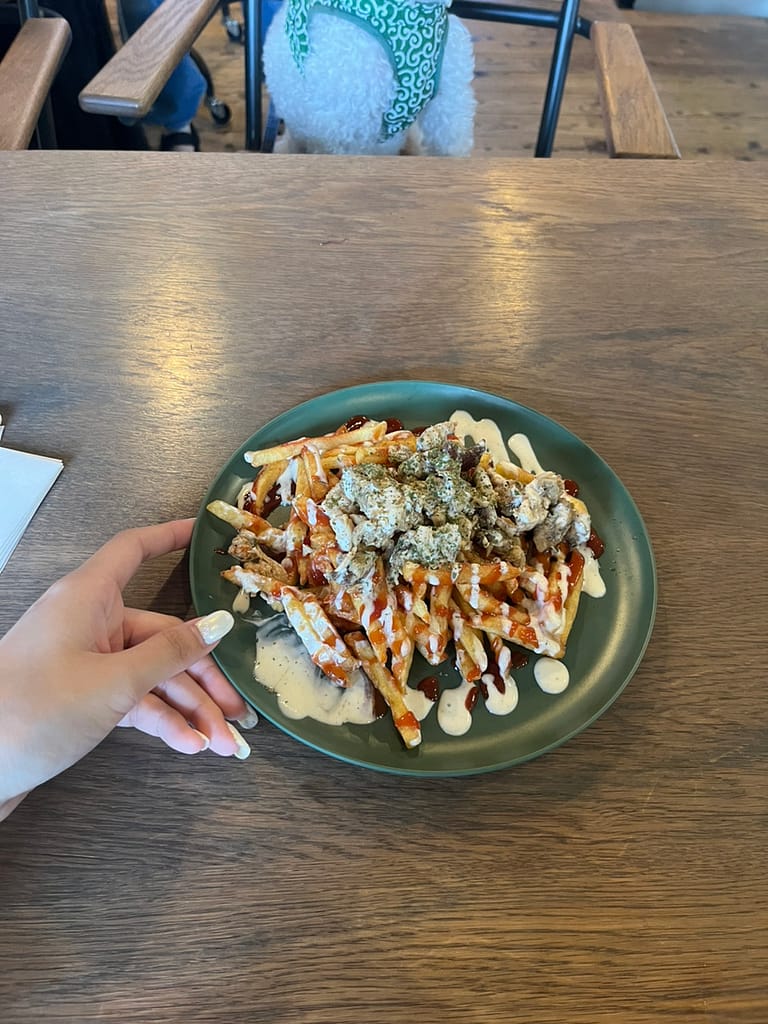 ポテトの上にチキンとオリジナルソースがかけてあってめっちゃおいしかった~~~!