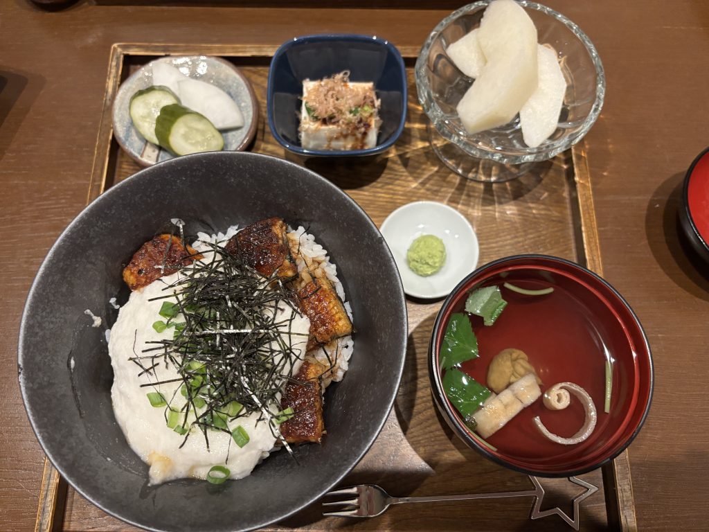 鰻と長芋という、意外性のある組み合わせ。「うなぎに、まさかあの食材を合わせるとは」と思わず驚かされます。関西風の“カリッと香ばしい鰻”と、“ねばねば・とろとろの長芋”という、二つの異なる食感が楽しめる一品です。