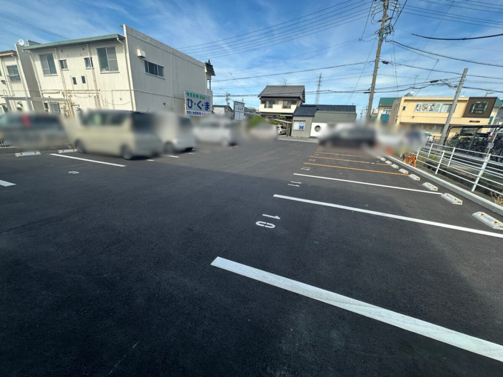 駐車場はお店の前に 10台ほど(公式情報)停められます。オレンジと白の線がありますが、白色の線が「むらせ」専用の駐車スペースと思われます。