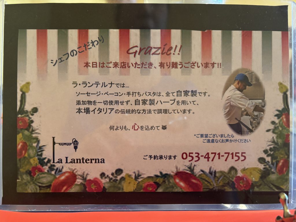 浜松市中央区下池川町に佇む、温かいランプの灯りのようなイタリアンレストラン「La Lanterna(ラ・ランテルナ)」さんに行ってきました!