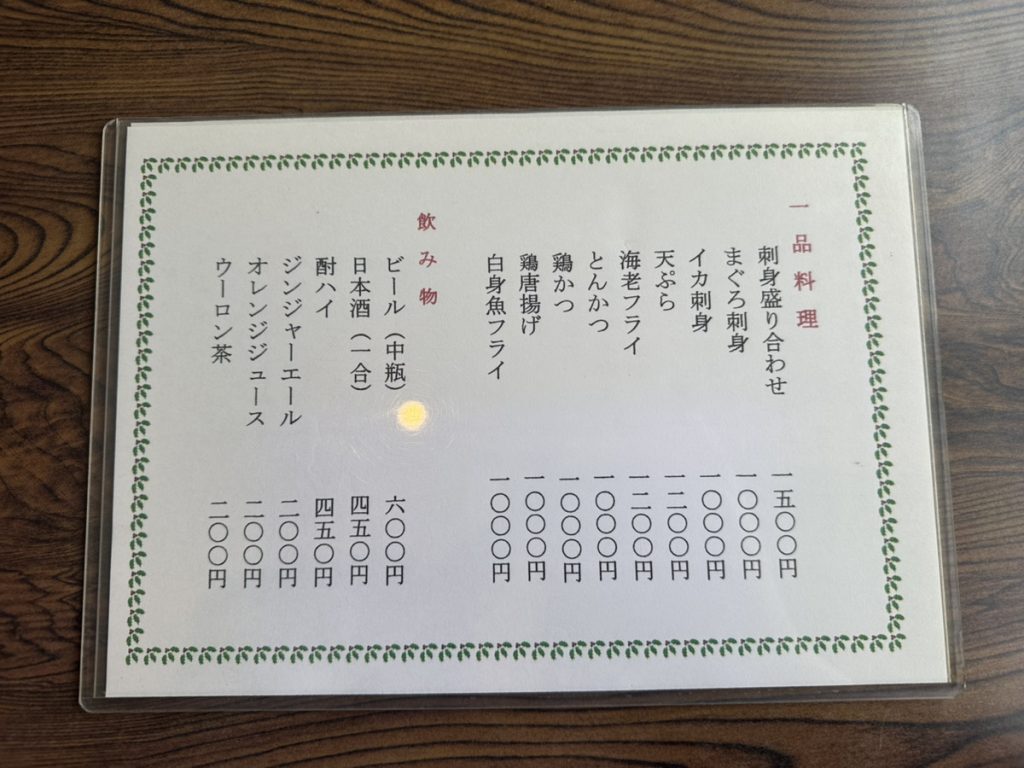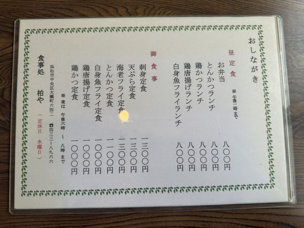 「食事処 柏や」のメニュー