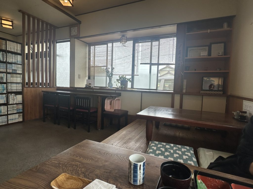 お店は、まるで親戚の家に遊びに来たかのような、落ち着くアットホームな空間。カウンター席(3席)や小上がりのテーブル席(2席)があり、地元の方々が日常使いしている様子が伺えます。