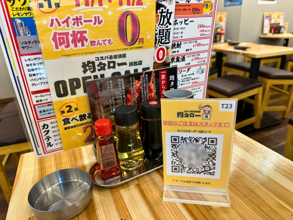 注文は卓上のQRコードを開いてLINEで注文することが出来、この方式ならスタッフを呼ぶ手間もなく、気軽に自分のペースで注文できます。最近の居酒屋では増えてきたキャッシュレス・スマート注文のスタイルですが、均タローでもスムーズに取り入れられていて、初めてでも迷わず利用できました。