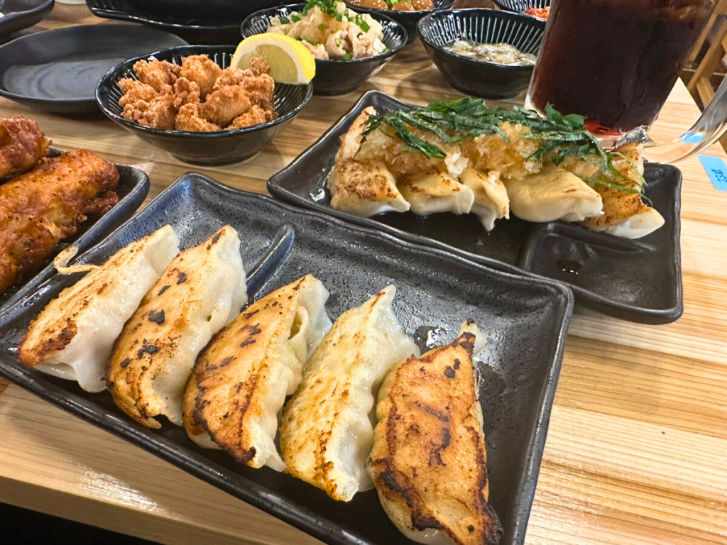 外はパリッと香ばしく、中は肉汁たっぷりでジューシー。噛むたびに旨味が口いっぱいに広がり、ビールとの相性も抜群です。シンプルながらもクセになる味わいで、ついもう一皿頼みたくなる満足感のある一品です。旨辛キムチ餃子・高菜めんたい餃子・大葉おろし餃子・揚げ餃子と変わり種の餃子があるのも嬉しいポイントです。