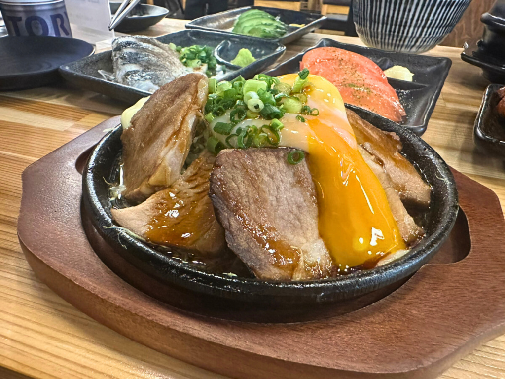 厚めのチャーシューがごろっと乗り、卵を崩して食べると口いっぱいに広がる至福のひと時。ふちに添えられたマヨネーズがまろやかさとコクをプラスし、全体の味を見事にまとめ上げます。中に入ったキャベツがたれを吸収し、シャキシャキの食感とほんのり甘みを加えてくれるのも嬉しいポイント。チャーシューの旨味、卵のまろやかさ、マヨネーズのコク、キャベツの食感が重なり合い、ひと口ごとに味わいの層が広がる、贅沢でやみつきになる一品です。