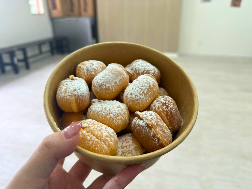 店内で一つ一つ丁寧に焼き上げられるベビーカステラには、北海道産小麦粉と「龍のたまご」を使用されており、ふんわりとした食感とやさしい甘さ。シュガーをかけても甘すぎず、トッピングを加えることでより香ばしさや味わいのアクセントが楽しめます。