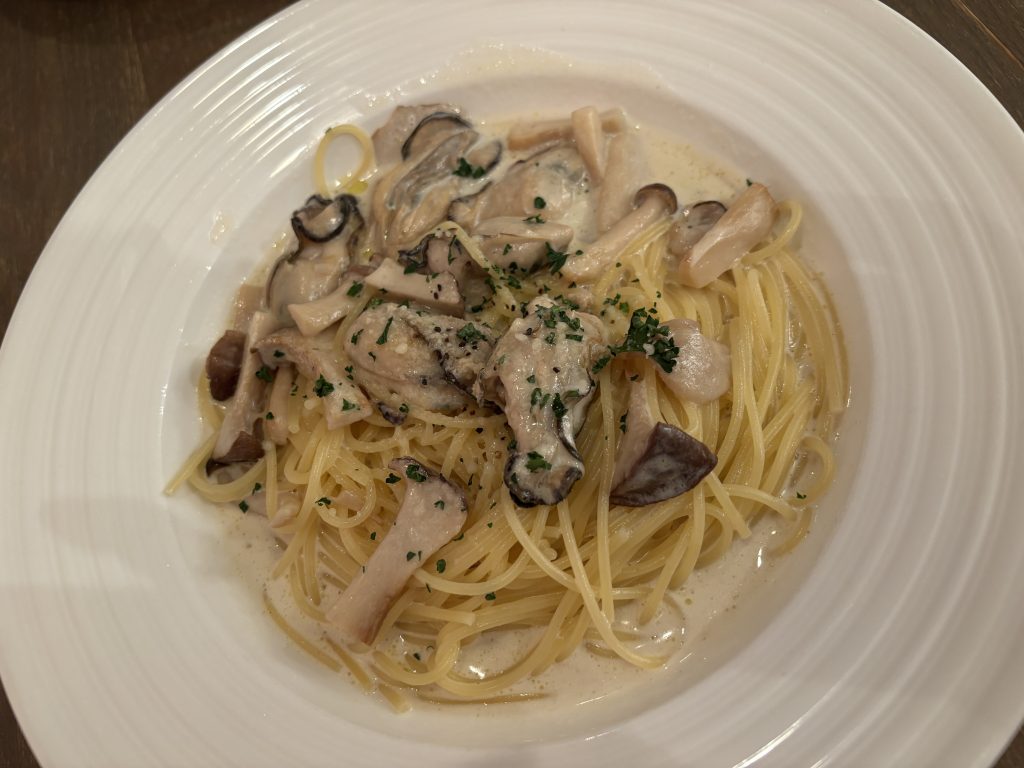 カキときのこのクリームソースは、牡蠣がたっぷり入っていて最高の一品。一緒に行った子とシェアしたいねって言って取り皿を貰って両方とも食べることが出来たよ。