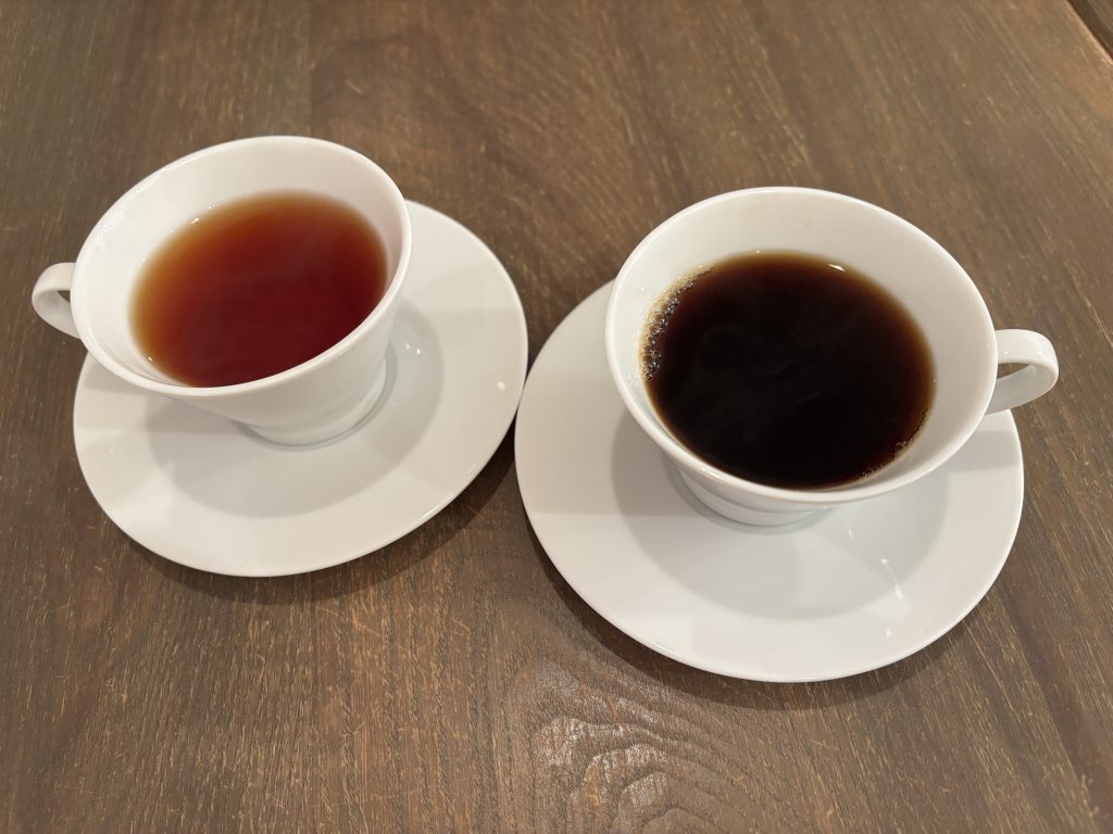 お飲み物は温かいコーヒーと紅茶でお願いしました。香りも豊かでデザートにピッタリ!