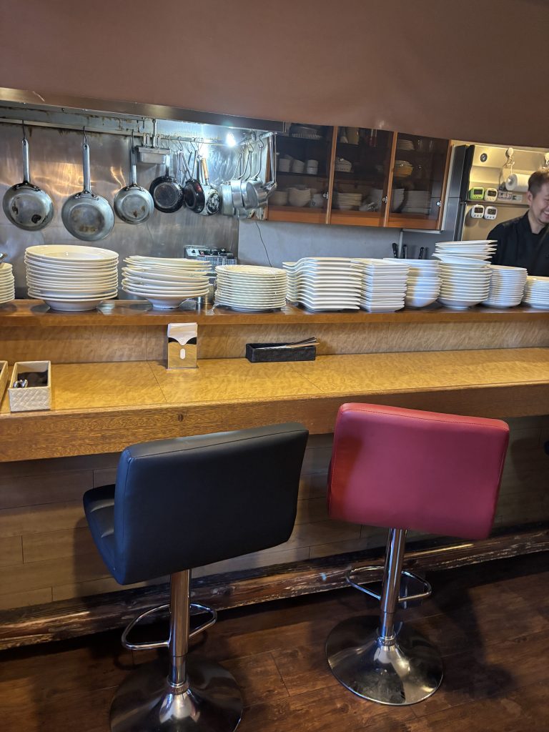 入ってすぐ、カウンター席がいくつかあり、右手のお部屋へ行くと素敵な空間が広がっています。