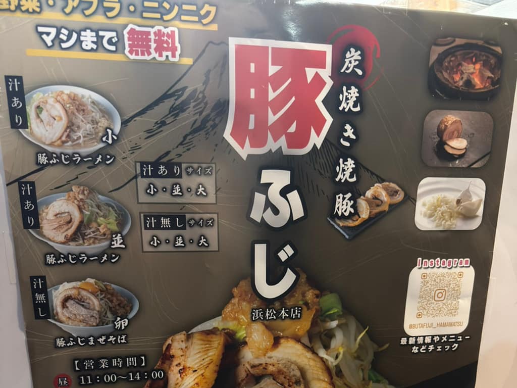 浜松市中央区幸に、2026年2月4日ニューオープンした「炭焼き豚チャーシュー 豚ふじ本店」。 炭焼きチャーシューを主役にした二郎系ラーメン専門店で、ボリューム感がありながらも、男性はもちろん女性にも食べやすいサイズ展開となっております。