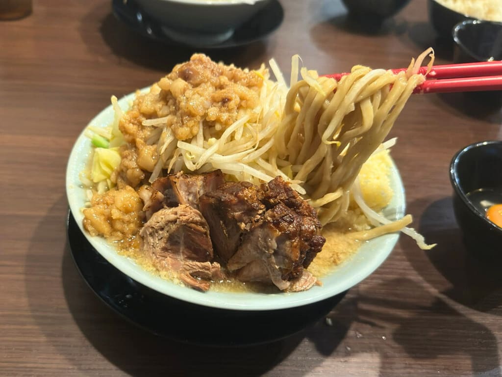 店名の通りチャーシューは厚みがあり、味もしっかり。ニンニクはマシにするとかなり強めなので、好みに合わせて調整するのがおすすめです。