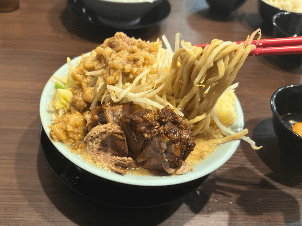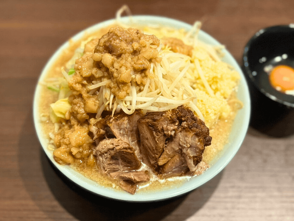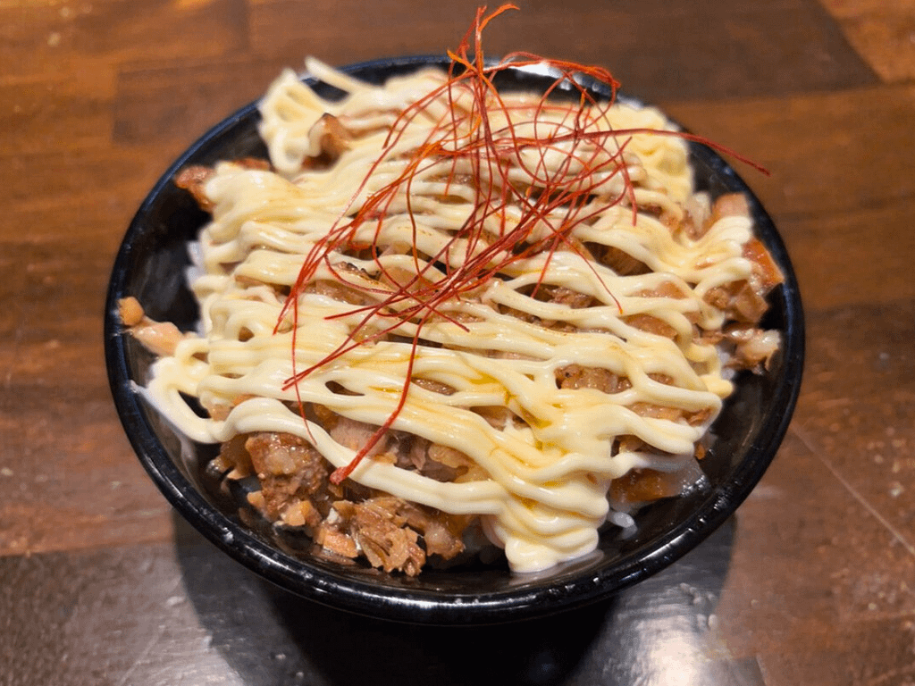 細かく刻まれた焼豚がご飯の上にたっぷりとのせられ、香ばしさと旨みが一口ごとに広がります。さらにマヨネーズのコクと糸唐辛子のピリッとしたアクセントが重なり、食欲を強烈に刺激。ボリューム感もしっかりあり、満足度の高い“ギルティ”な一杯に仕上がっています。
