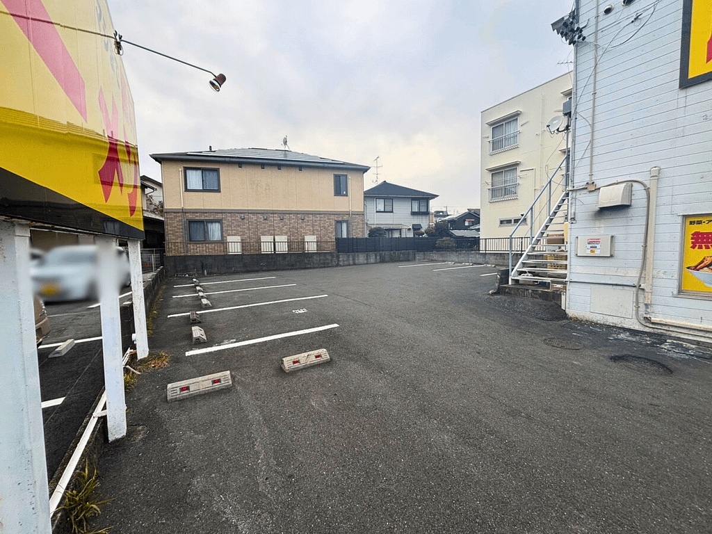 駐車場はお店左側から入った場所にあり、約8台駐車可能です。