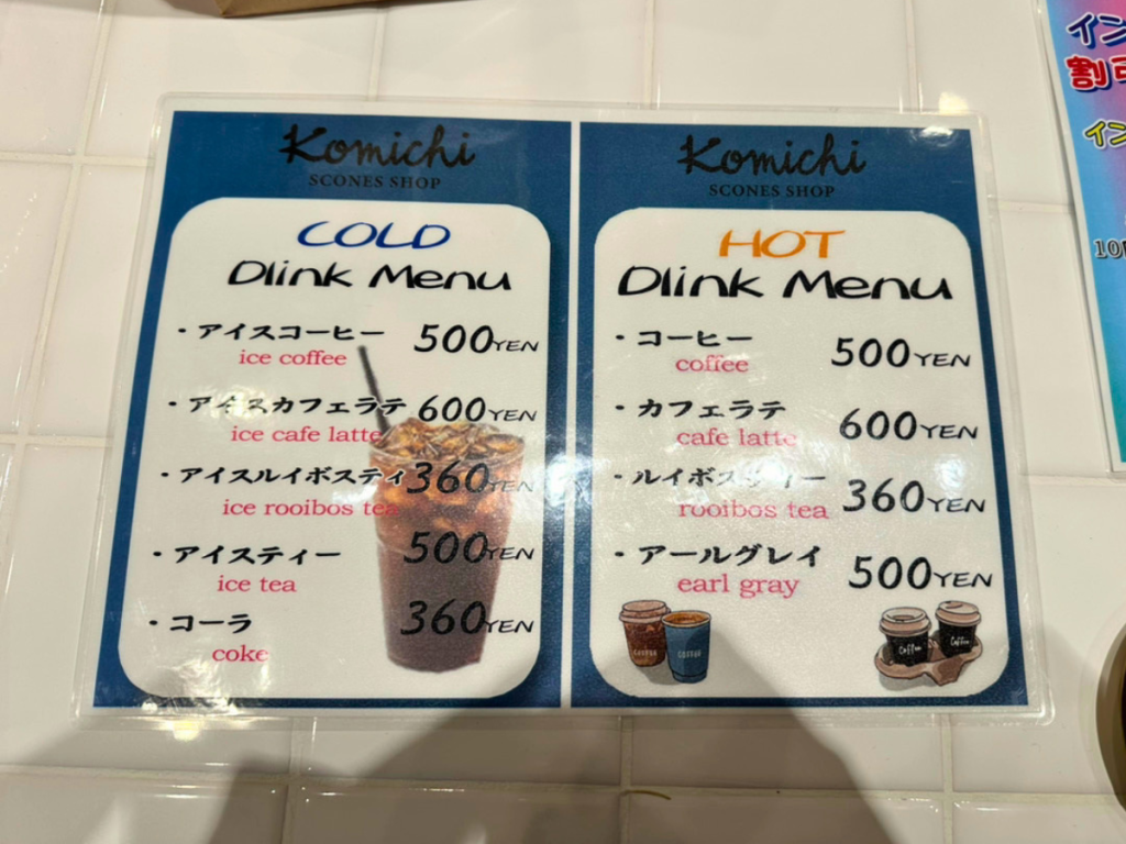 スコーンに合うドリンクも販売されており、一緒に楽しめるのも嬉しいポイントです。