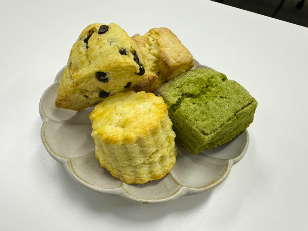 プレーンはバターの風味がやさしく広がるシンプルなおいしさ。チョコチップは甘さとコクが加わり、満足感のある一品です。さくほろは軽やかな口どけで、名前の通りの食感がクセになる仕上がり。さくほろ抹茶はほんのりとした苦みがアクセントになっており、甘さとのバランスが絶妙です。