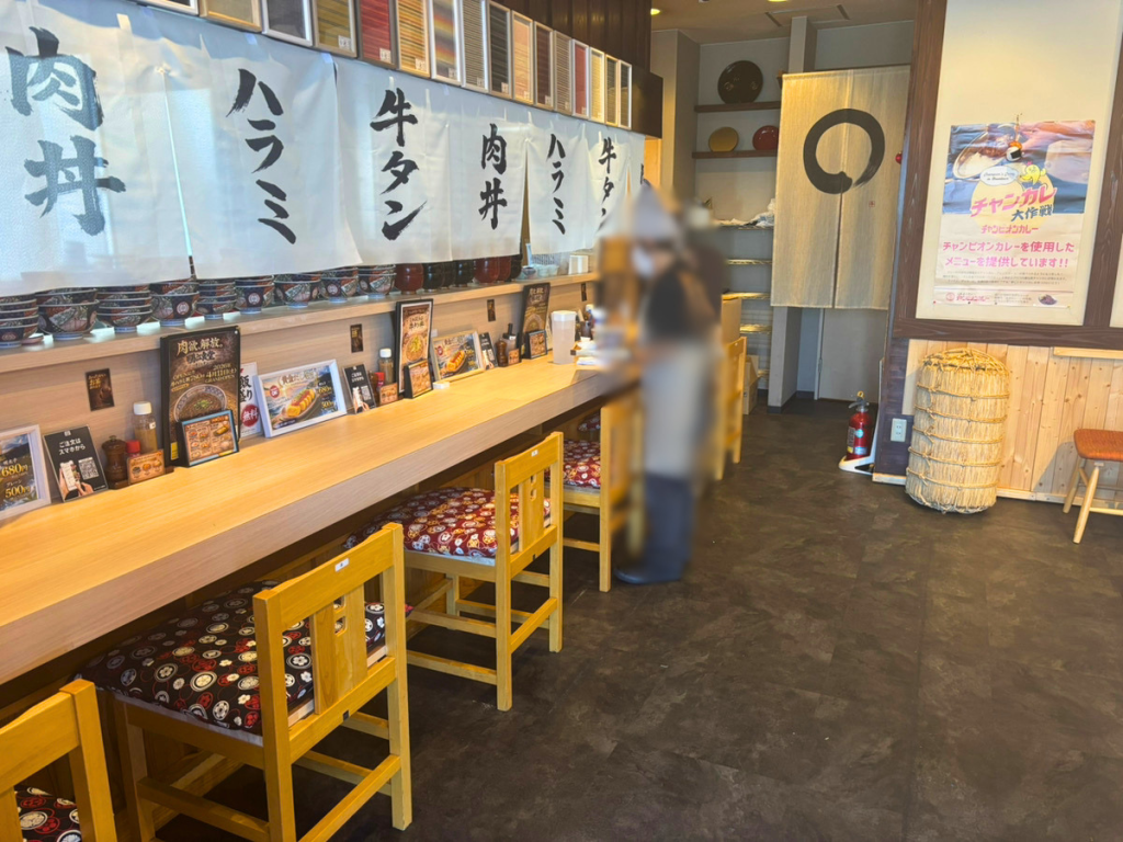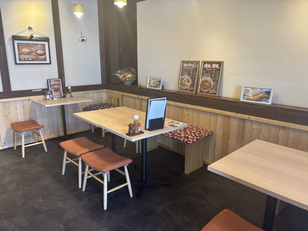 店内はカウンター席とテーブル席が用意されており、お一人様はもちろん、ご家族でも利用しやすい落ち着いた雰囲気です。
