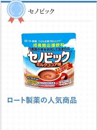 - セノビック:骨の成長をサポートする卵黄由来の成分「ボーンペップ」を配合しているのが最大の特徴です。もちろん、基本となるカルシウムやビタミンD、鉄分もしっかり含まれています。