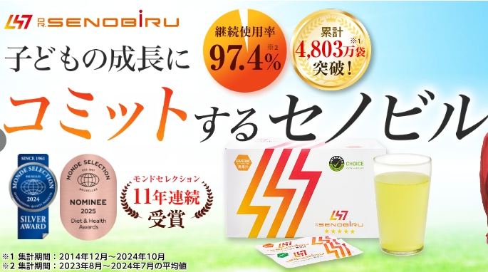 - セノビル(SENOBIRU):成長に欠かせないアミノ酸「アルギニン」の配合量に特化した製品。スポーツを頑張るお子さんや、より本格的な栄養サポートを求めるご家庭から絶大な支持を得ています。