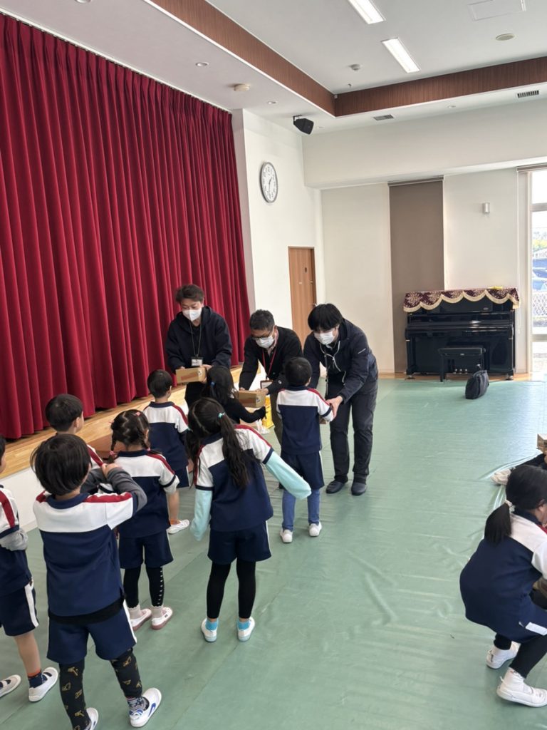 風の子こども園と双葉保育園の卒園児のみなさんへ、ささやかながら記念品を贈呈いたしました。