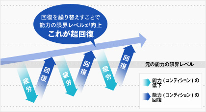 逆に疲労をちゃんと回復すれば超回復っていう働きがあり、元の能力より高いレベルに