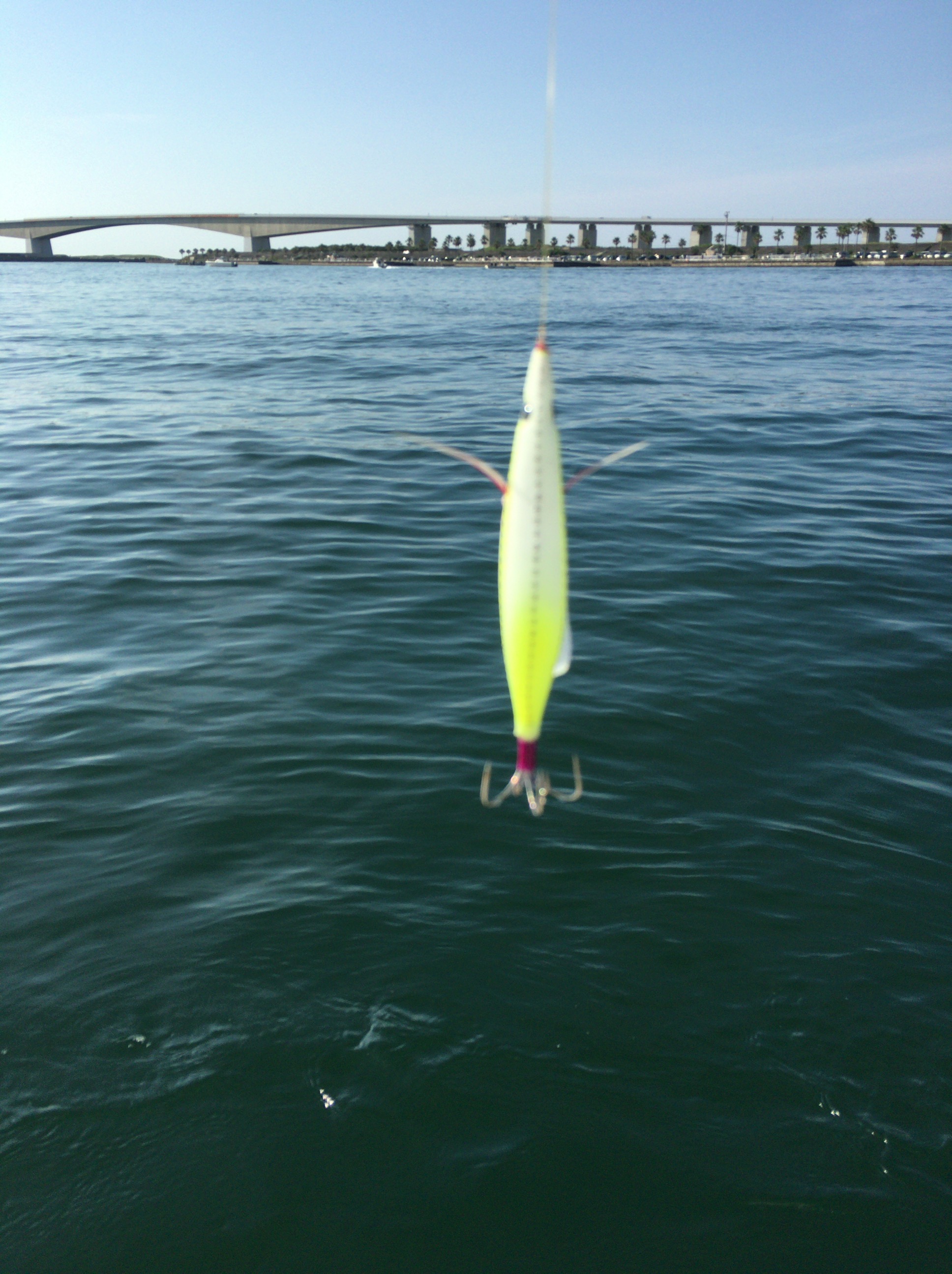 急に釣り竿がギューーっと曲がったから疑似餌が地面にひっかかちゃったのかなと思ったんだ。
