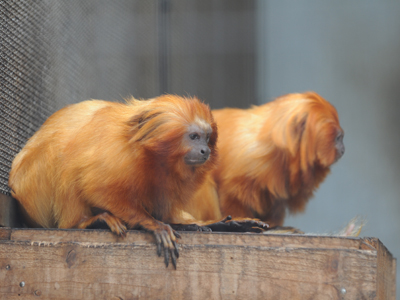 きれいな黄金色の毛に包まれ、顔の周辺に雄ライオンのようなたてがみ状の毛が生えている小型サル“ゴールデンライオンタマリン”の飼育されている様子が見られるのは、国内でここだけ!