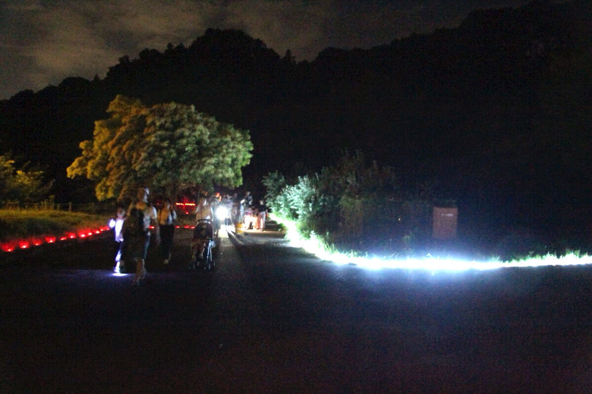 ホタルまでの道には、迷わないように光の道になってるよ!