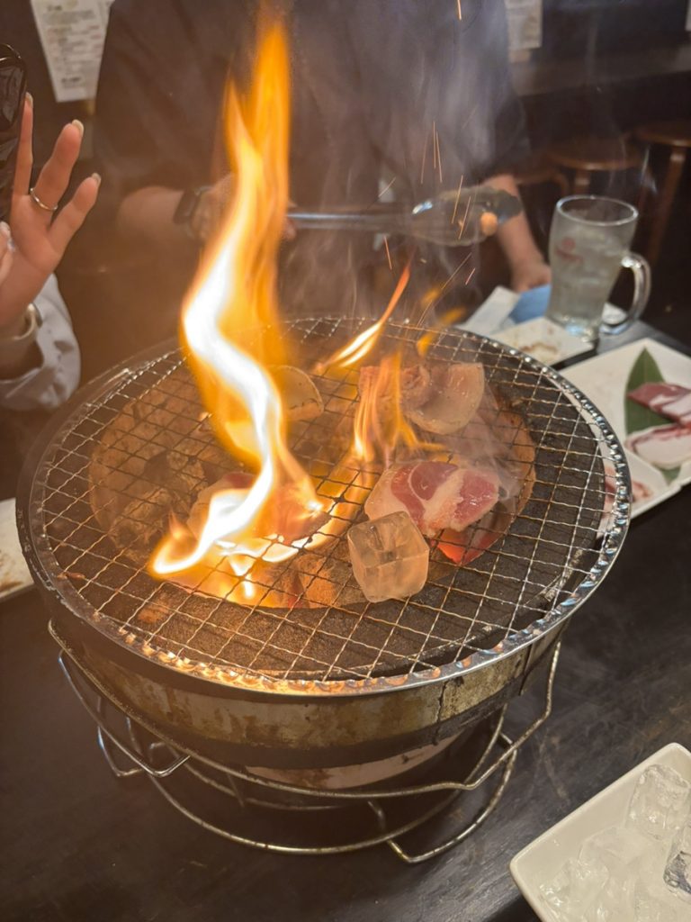 お肉は、目の前の網で自分で焼くスタイル。ここで、百獣屋ならではの工夫を発見!