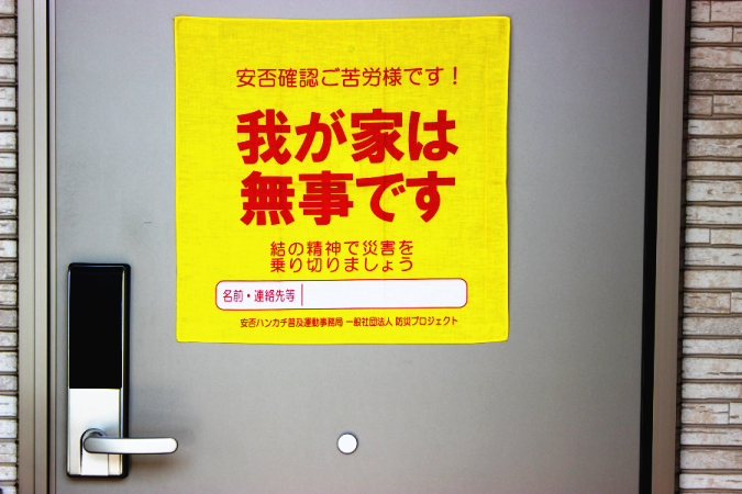 無地の黄色いハンカチに、連絡先や、避難先を書いておけば来た人にも分かりやすいじゃろう。