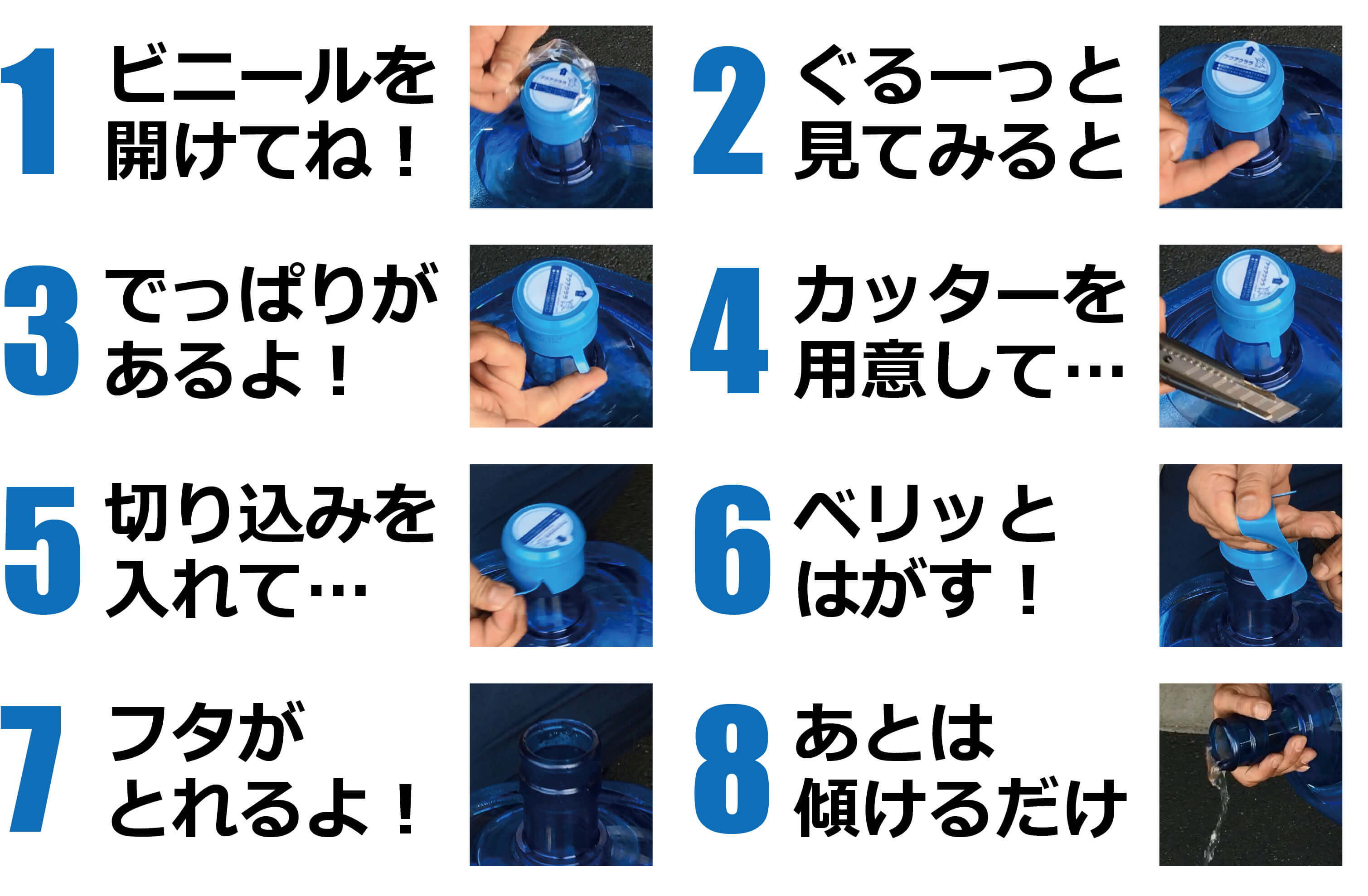 特別な機械や道具がなくても、カッターさえあれば、お水が飲めるんじゃよ。