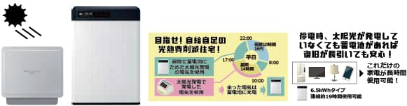 停電時でも、時間に関係なく貯めた電気を使うことが可能です。