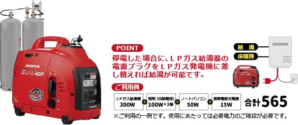 不足の停電時でもLPガスを燃料に必要な電力を確保しましょう。