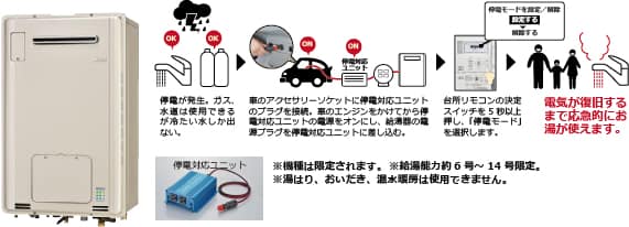 「停電モード」は電気が復旧するまで応急的に使用可能です。