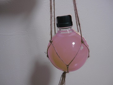 100円ショップで買った麻ひもでハンギングバスケットを作ってみました。