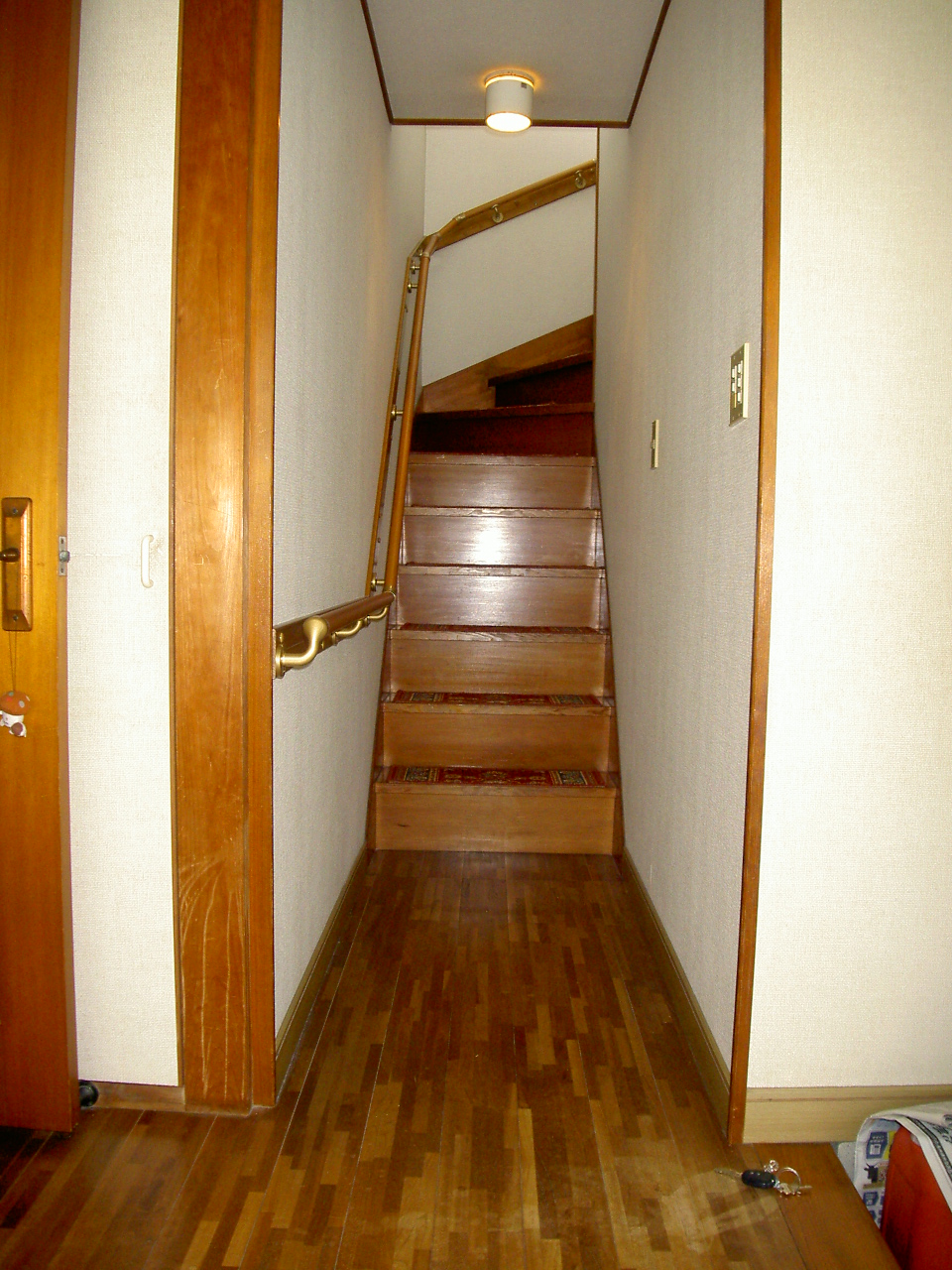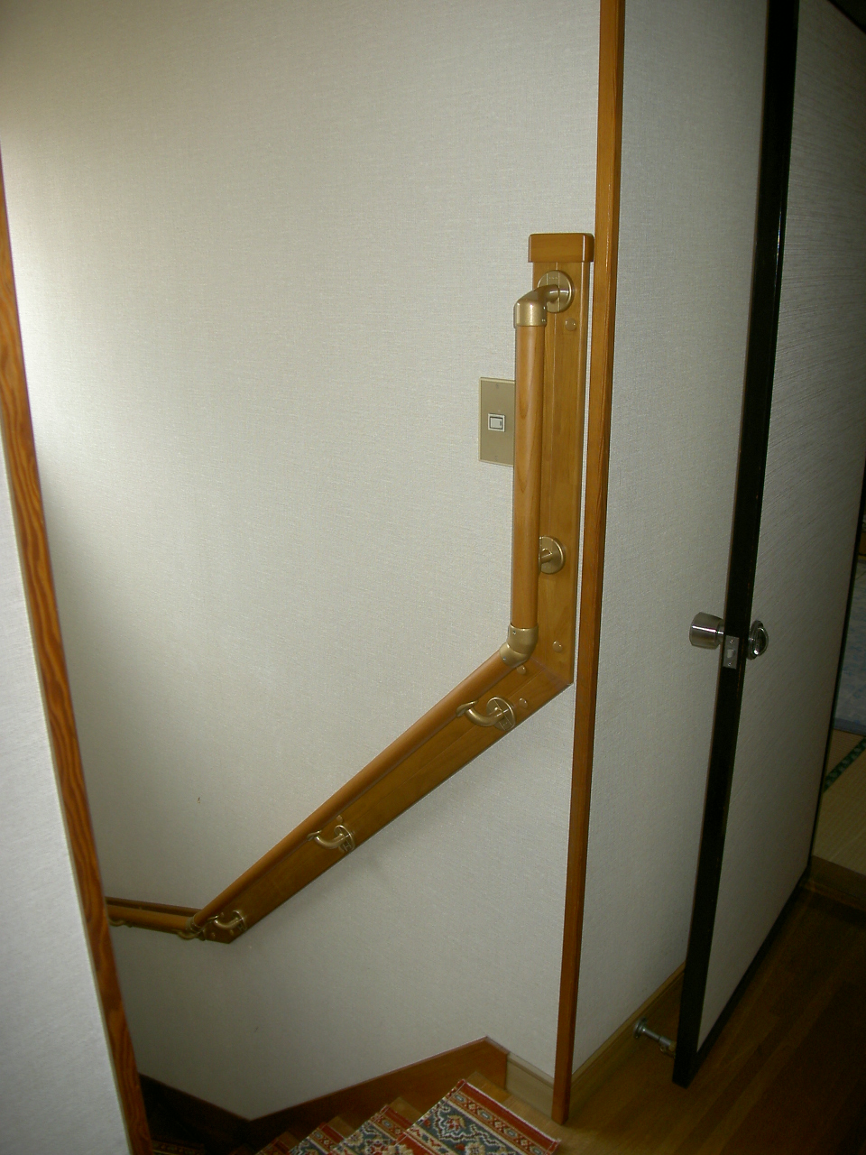 さてさて、先日、友達の家に寄ったら、階段手すりの取付け工事の打合せをしている所でした。