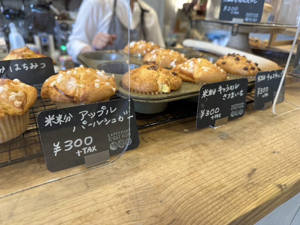 「CAFE & BAKE C’EST BON(カフェ&ベイク セボン)」は、手作りの優しい味わいが人気のカフェ&ベイクショップです。お店の看板メニューであるマフィンは、国産の全粒小麦粉や米粉を使用し、油にはこめ油、甘味にはきび砂糖を使うなど、素材にこだわって丁寧に作られています。