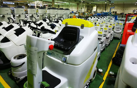 アマノ株式会社さん第8棟では主に空港やイオンなどの床をきれいにする清掃マシーンを製造しています。