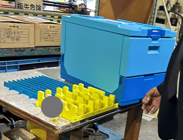 機械部品は、主にベアリング(画像左)やボールねじ、リニアガイド等の精機製品を取り扱っています。物流機器は、主にプラスチックコンテナ(画像右)やボックスパレット等の他にも、オーダーメイドの物流機器も提供可能です!